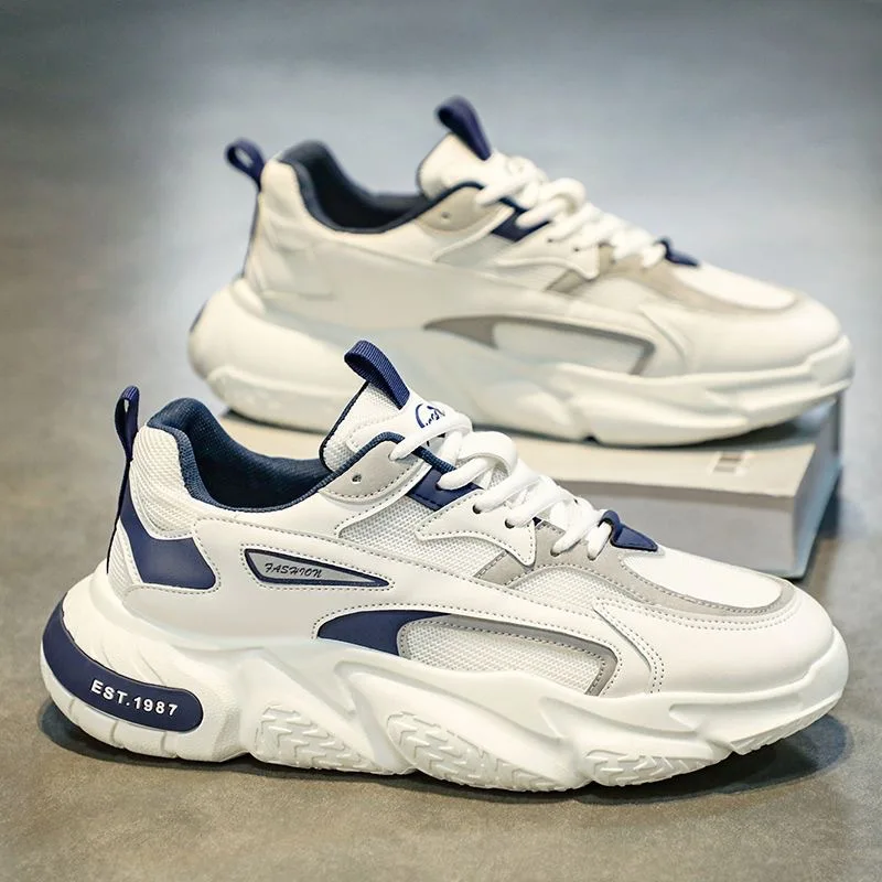 Thick Sole Versatile Clunky Sneaker For Men 2024 New Trend Mesh Lace Up Breathable Casual Sports Shoes Increased Soft Soles